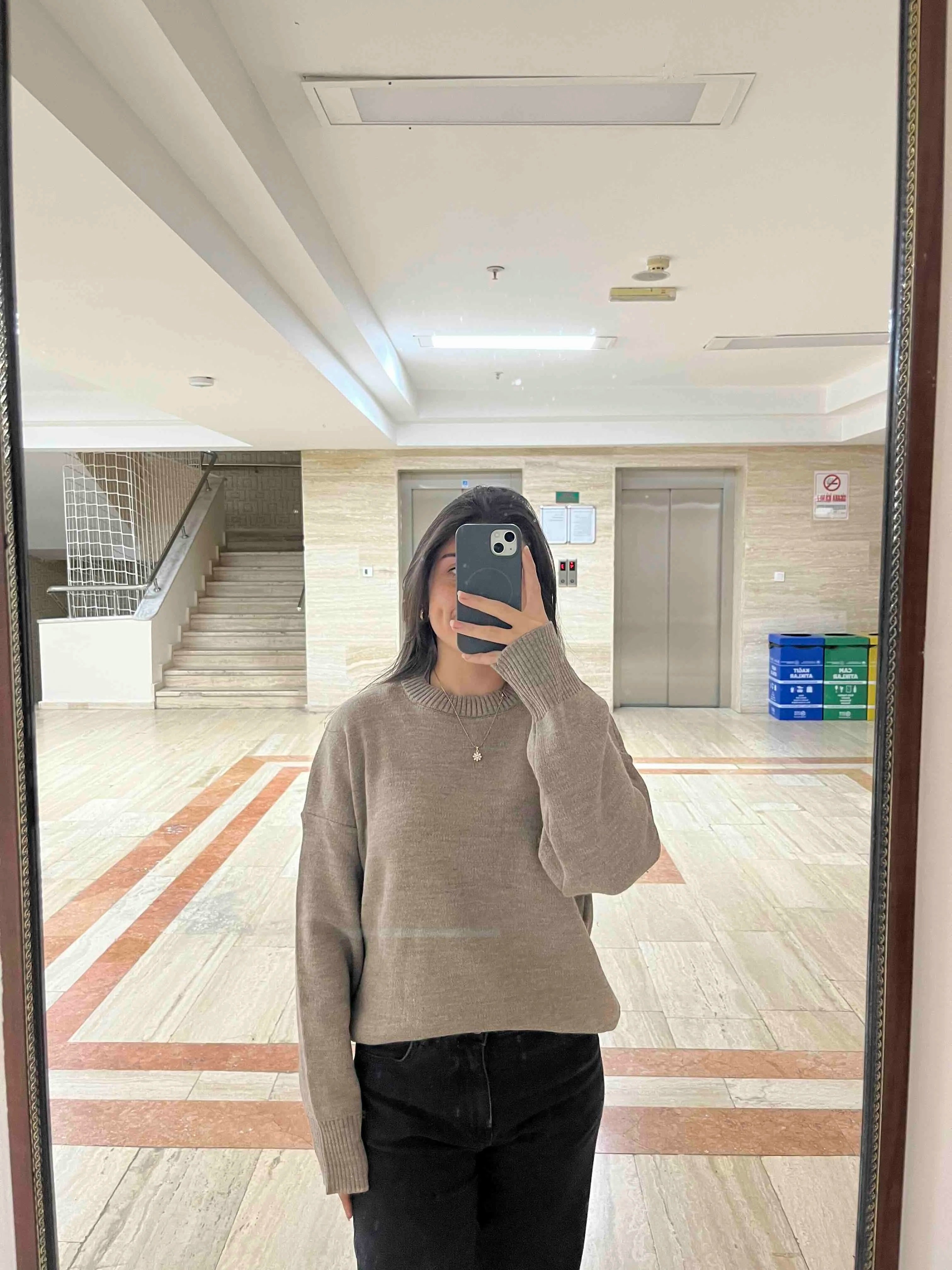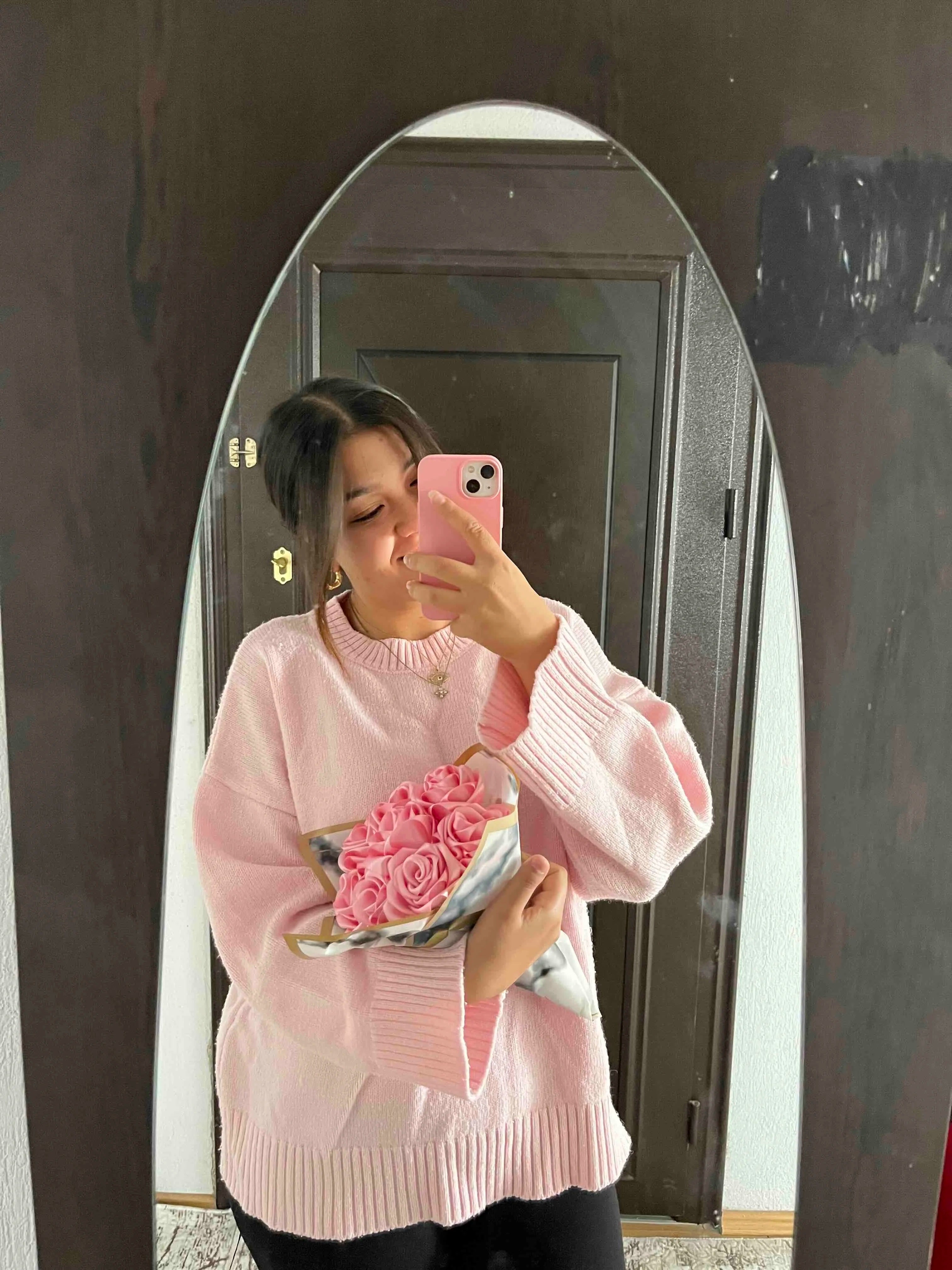 Su estructura oversize y fluida equilibra la parte superior del cuerpo y crea una silueta más ligera y moderna en las fotos, en lugar de una apariencia «pesada». La suavidad del tejido proporciona un movimiento natural al caminar, lo que te permite conseguir un aspecto más enérgico tanto en las fotos cotidianas como en los selfies frente al espejo.